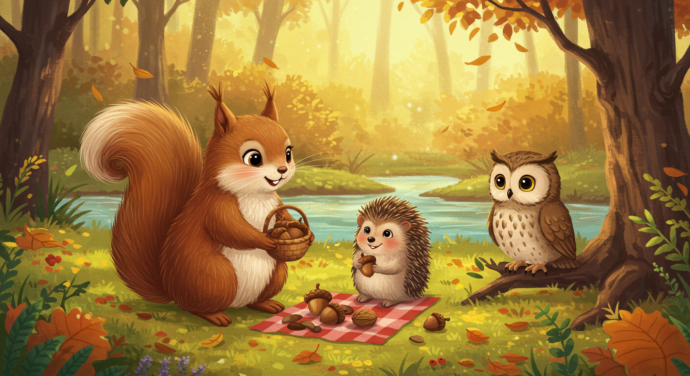 Niva, her sabah olduğu gibi yine gün doğarken ormanın kokusunu içine çekerek yemişlerini aramaya koyulmuş. Tam da bir meşe ağacının altında dolgun bir palamut bulmuşken, birden sevinçli sesler duymuş. Başını kaldırdığında, dostları Kirpi Kiko ve Bilge Baykuş Moni’yi karşısında görmüş. Niva gözlerini kısıp gülümsemiş: