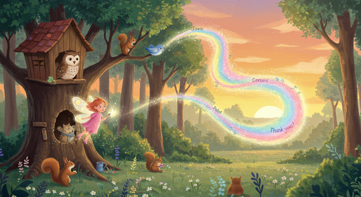 İnsanlar kafalarını kaldırıp baktıklarında, “Ne kadar parlak bir gün!” demişler. Oysa kimse o sabah gökyüzünü boyayan bir perinin kalbinde nasıl güzel bir ders taşıdığını bilmiyormuş. Bu sırada fındıklarını bulan sincap kardeşler sevinçle annelerine teşekkür etmeyi unutmamışlar. Böylelikle hep beraber mutlu bir şekilde sarılmışlar.